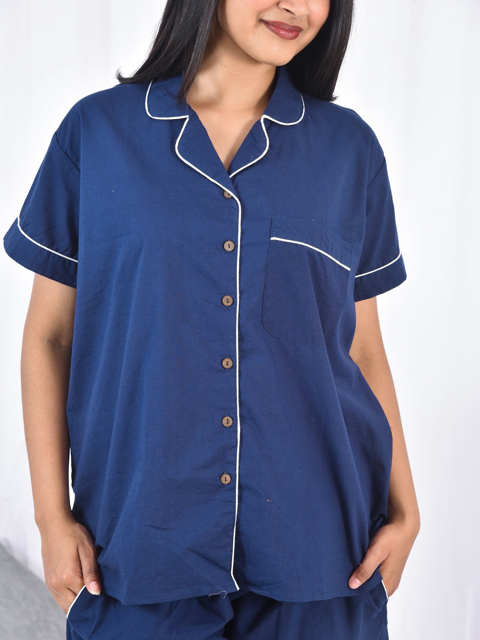 Blue Linen Short PJ Set