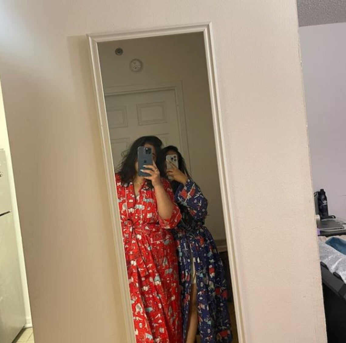 With a relaxed 52” length, practical side pockets, and flowy fit that flatters all shapes (yes, it’s plus-size friendly), this robe brings a boho-chic vibe to any setting. The block prints add a touch of artisanal charm—each print is one of a kind.
