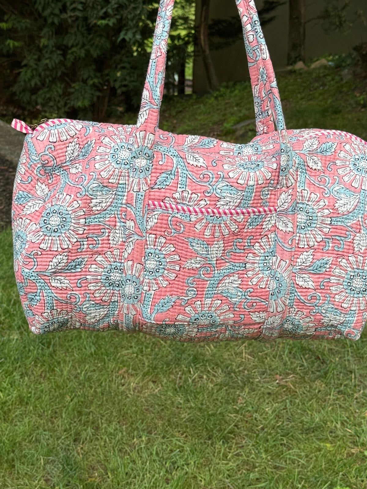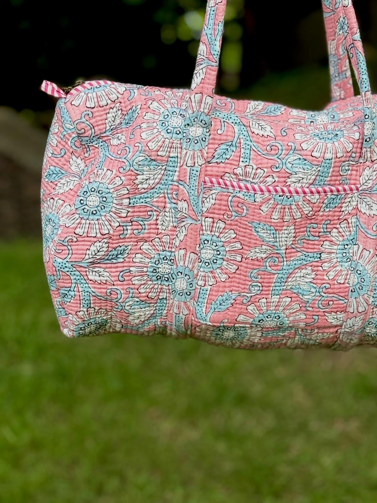 - Add a touch of artisan charm to your travel style with our quilted duffle bags, handcrafted in India using soft 100% cotton.