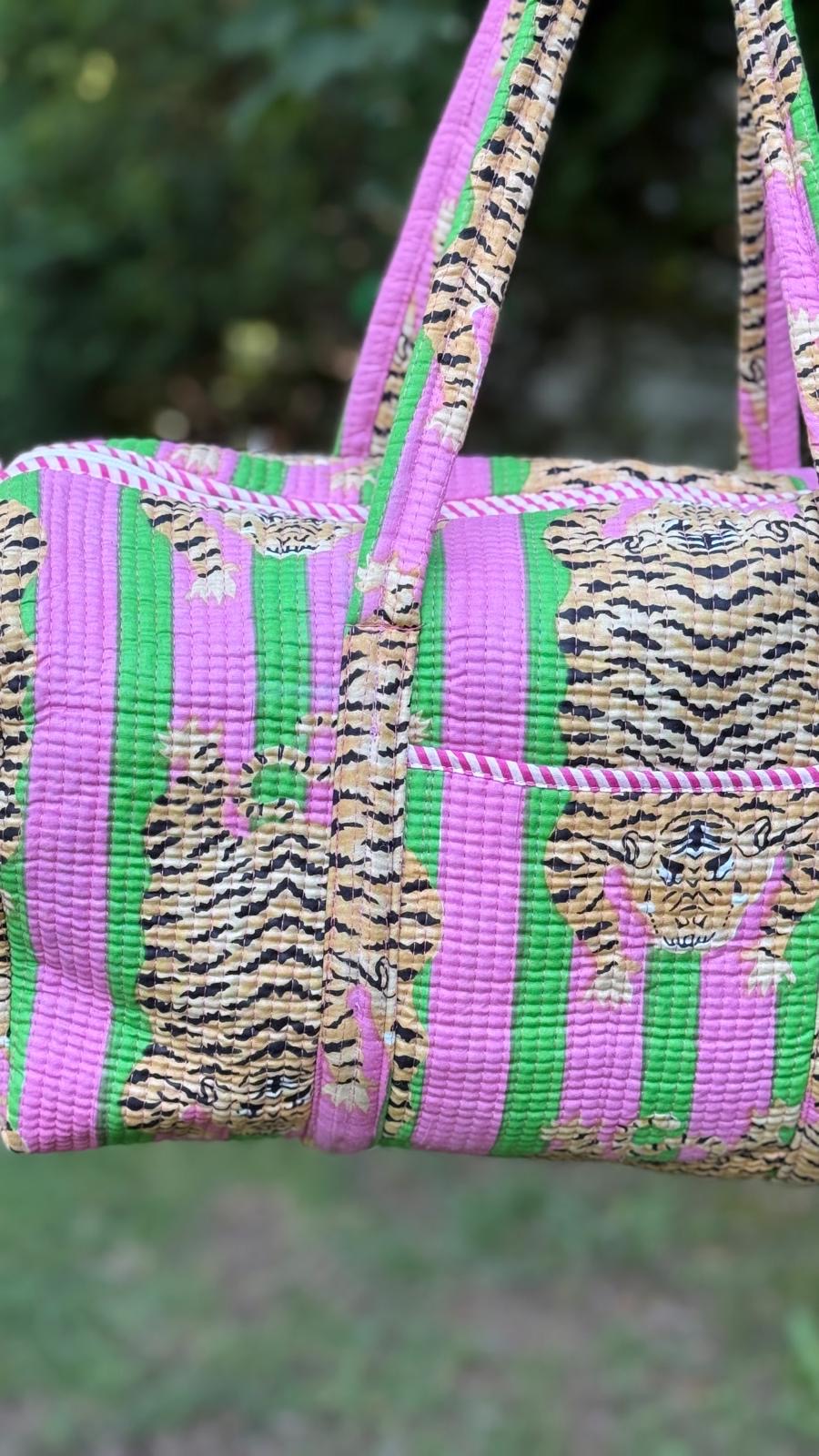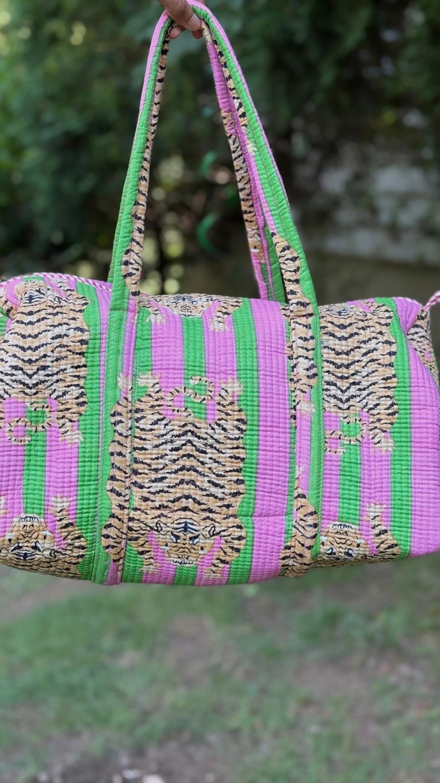 - Add a touch of artisan charm to your travel style with our quilted duffle bags, handcrafted in India using soft 100% cotton.