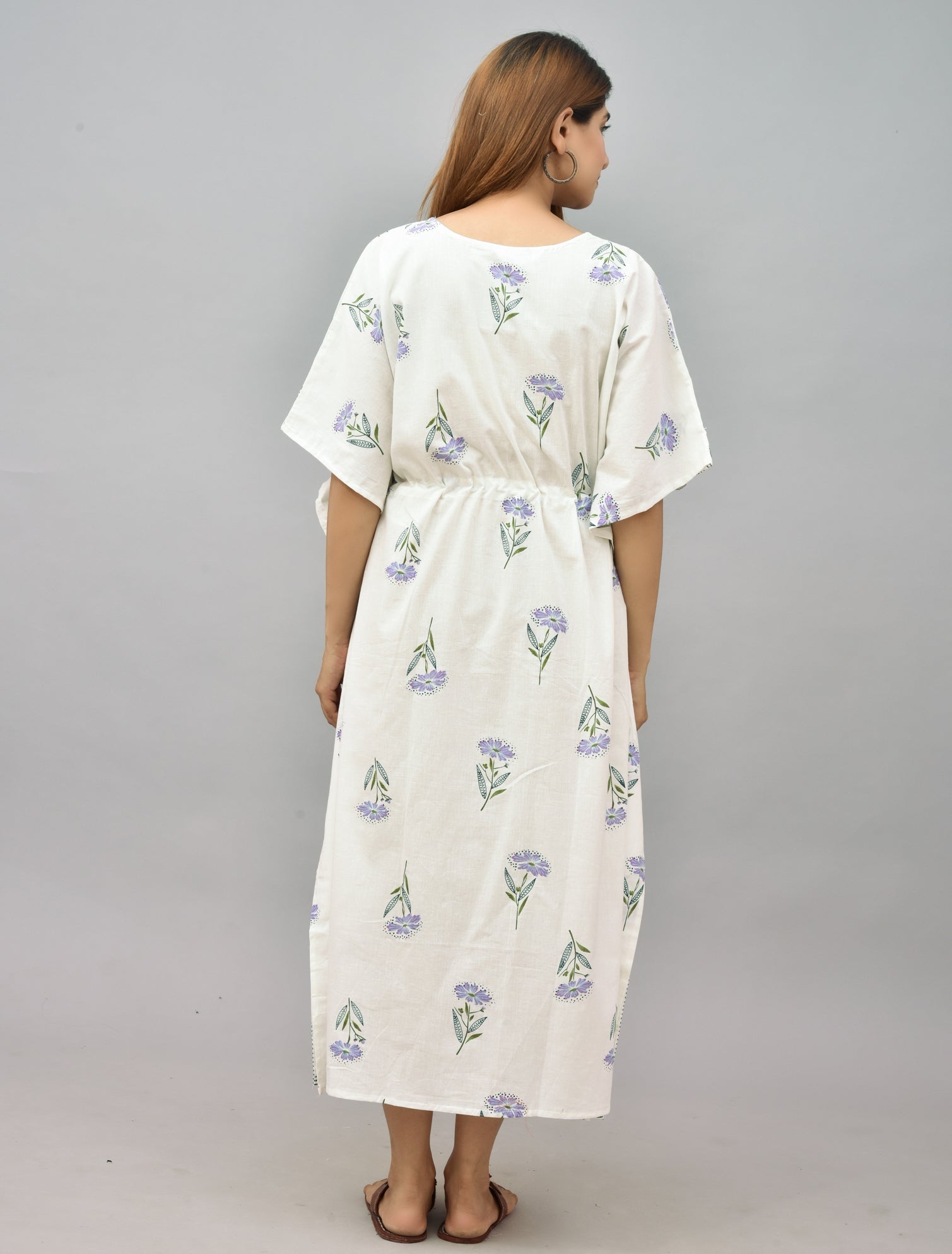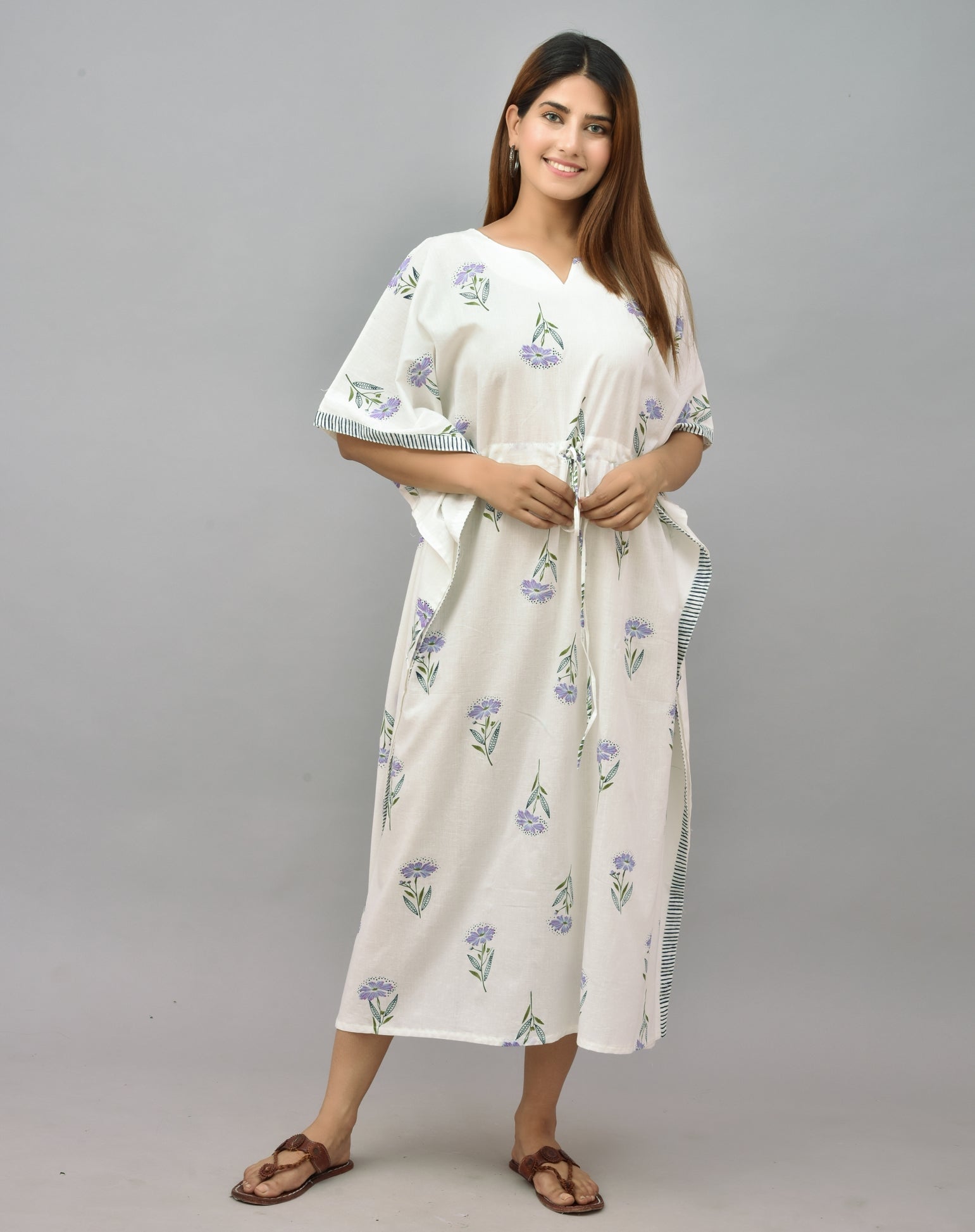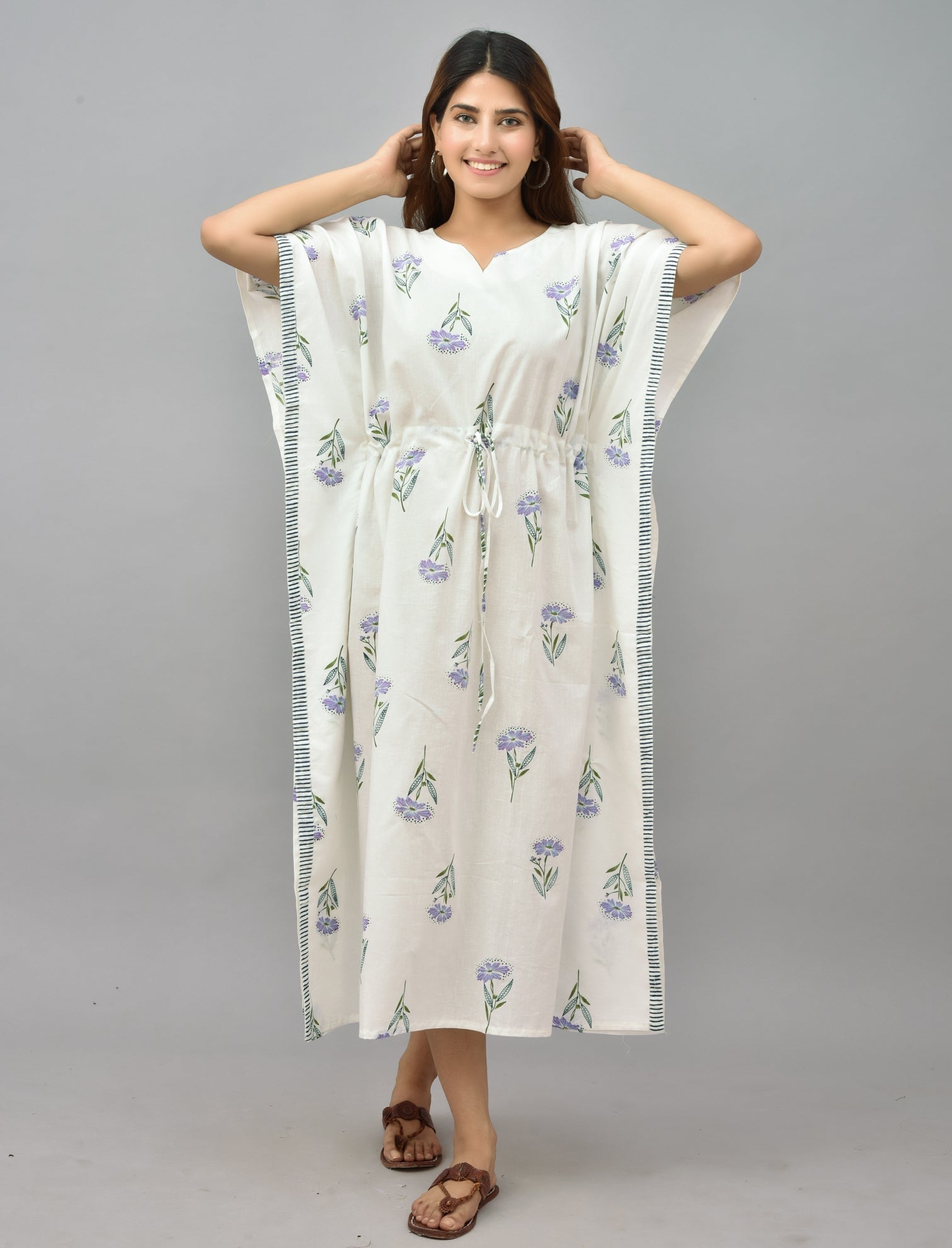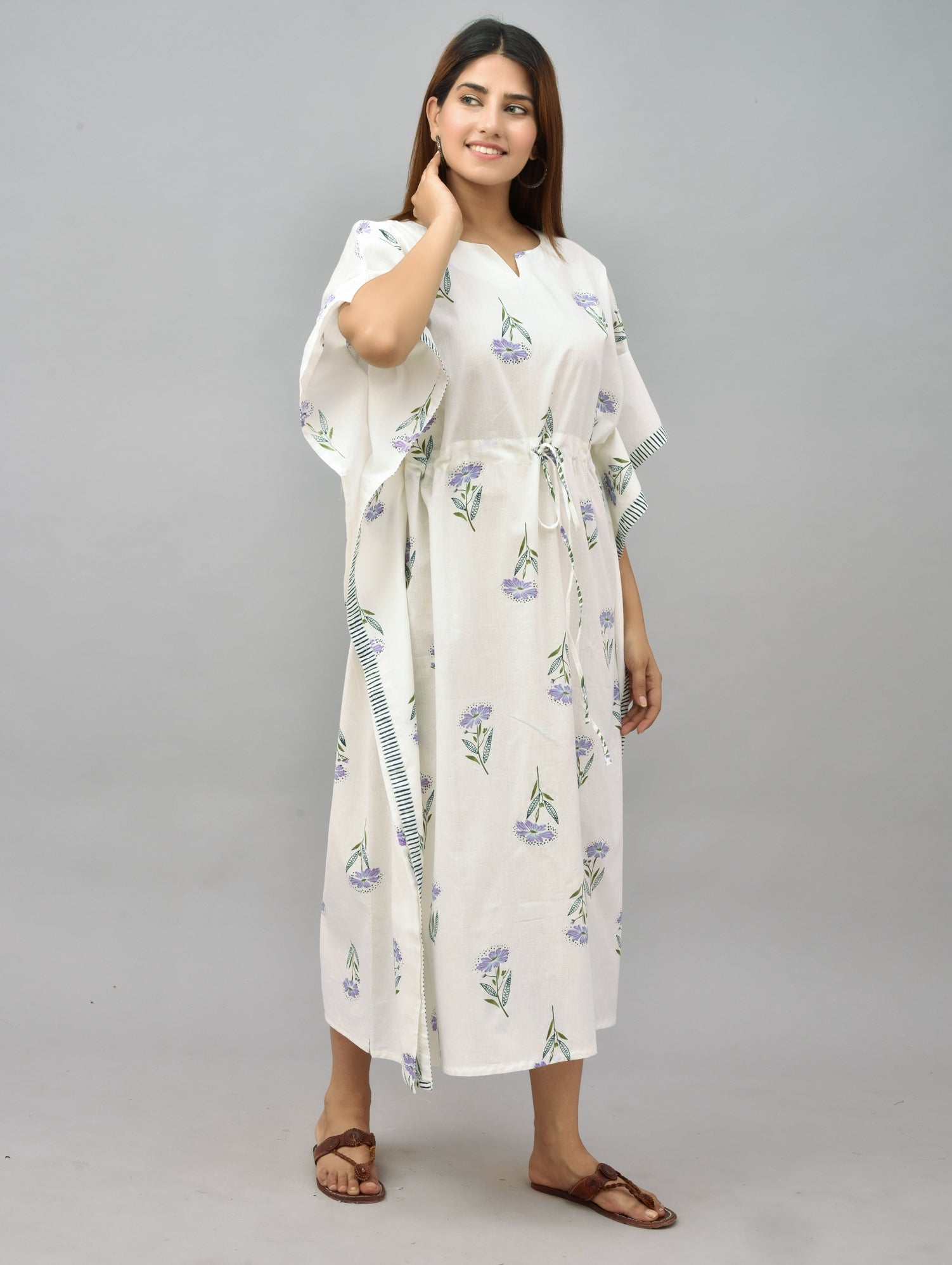 Floral Block Printed Cotton Kaftan