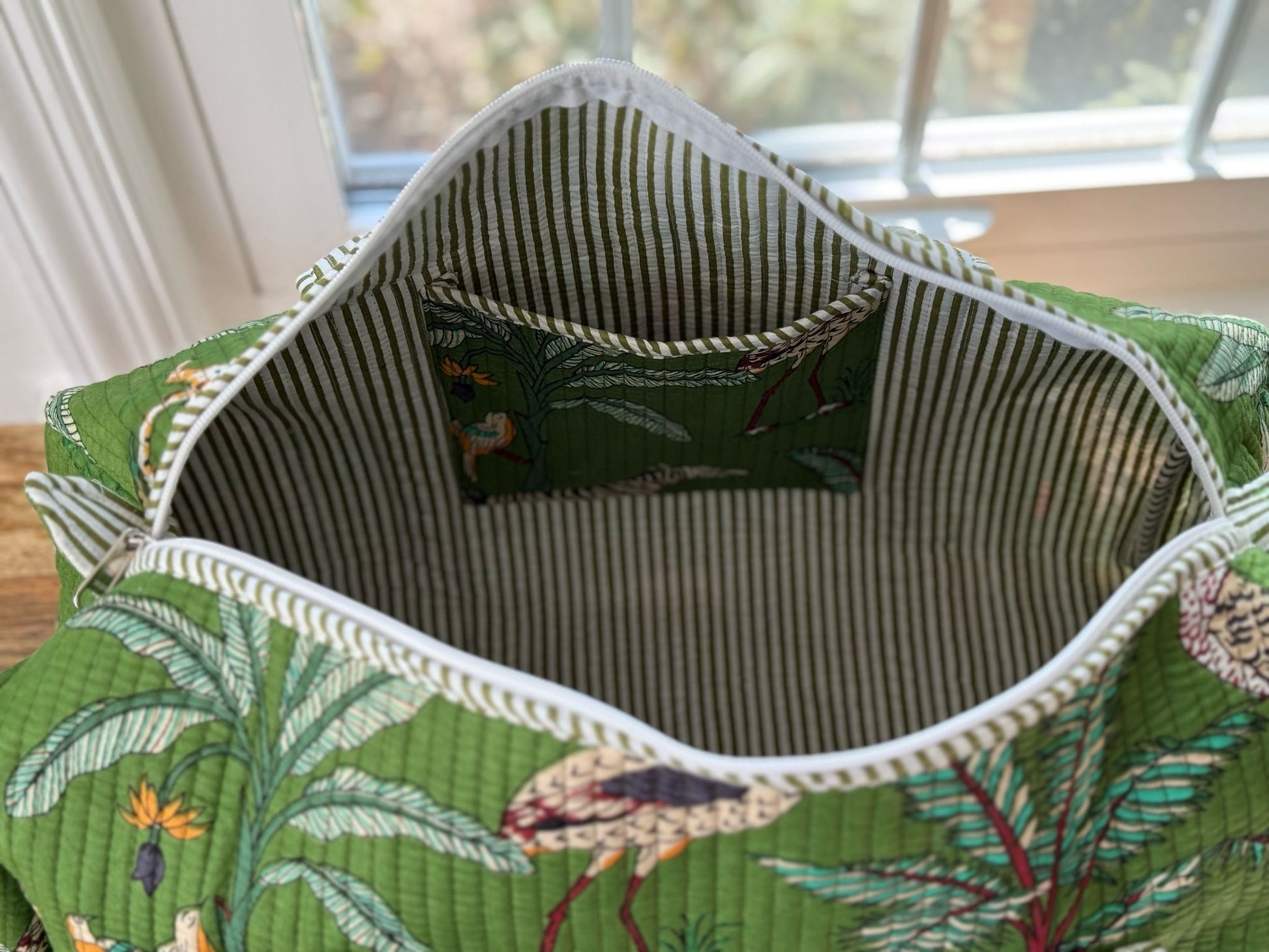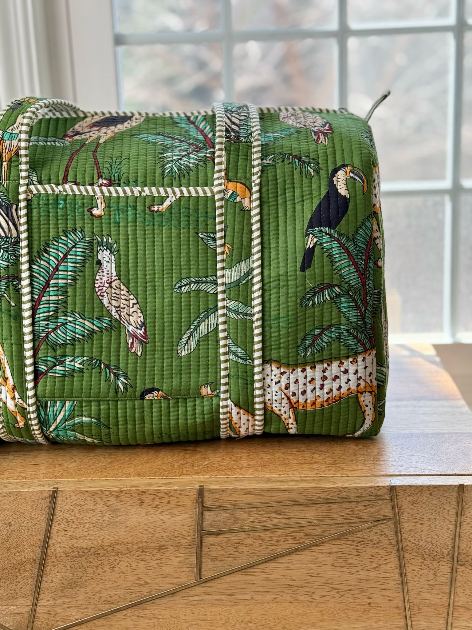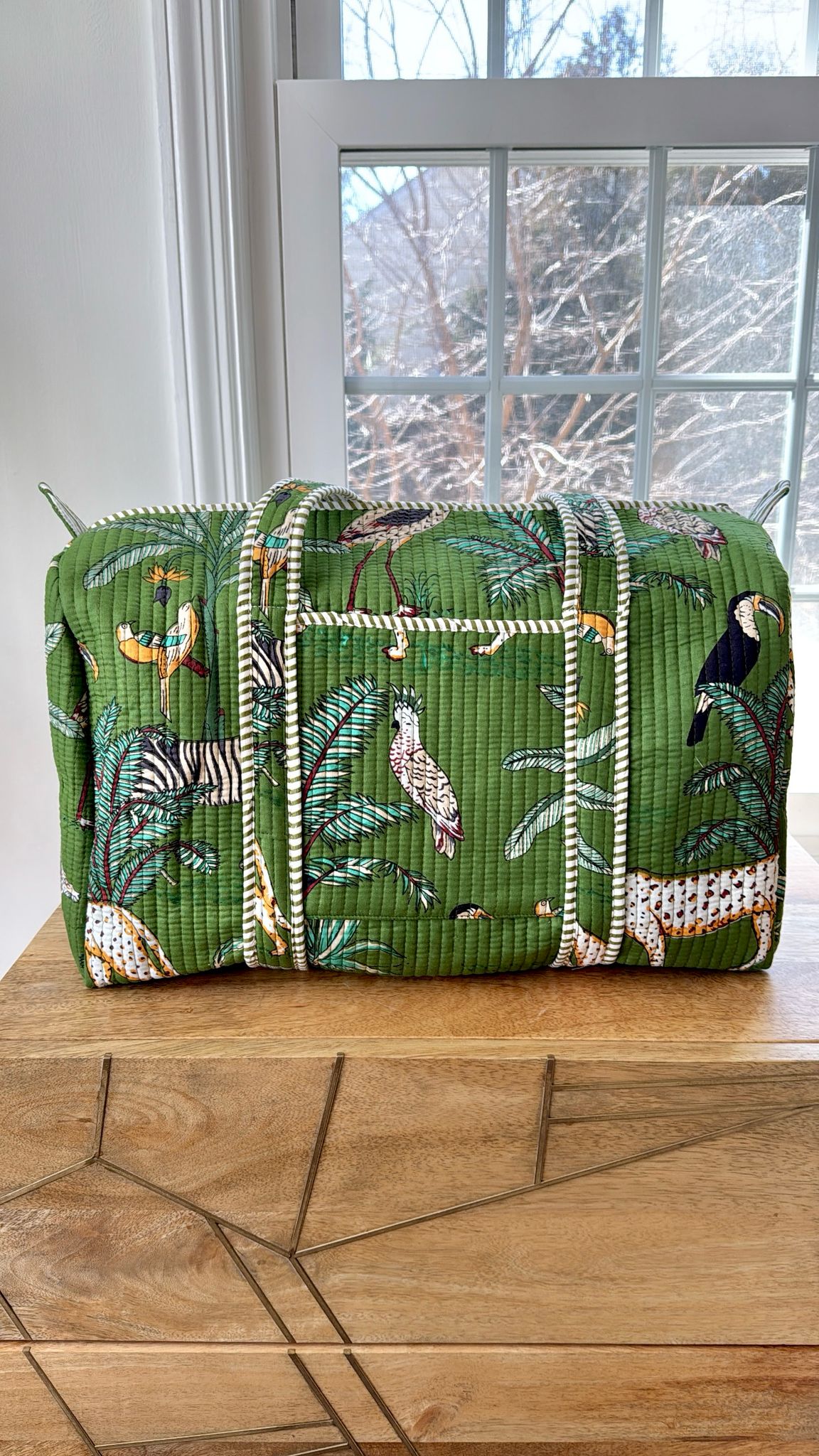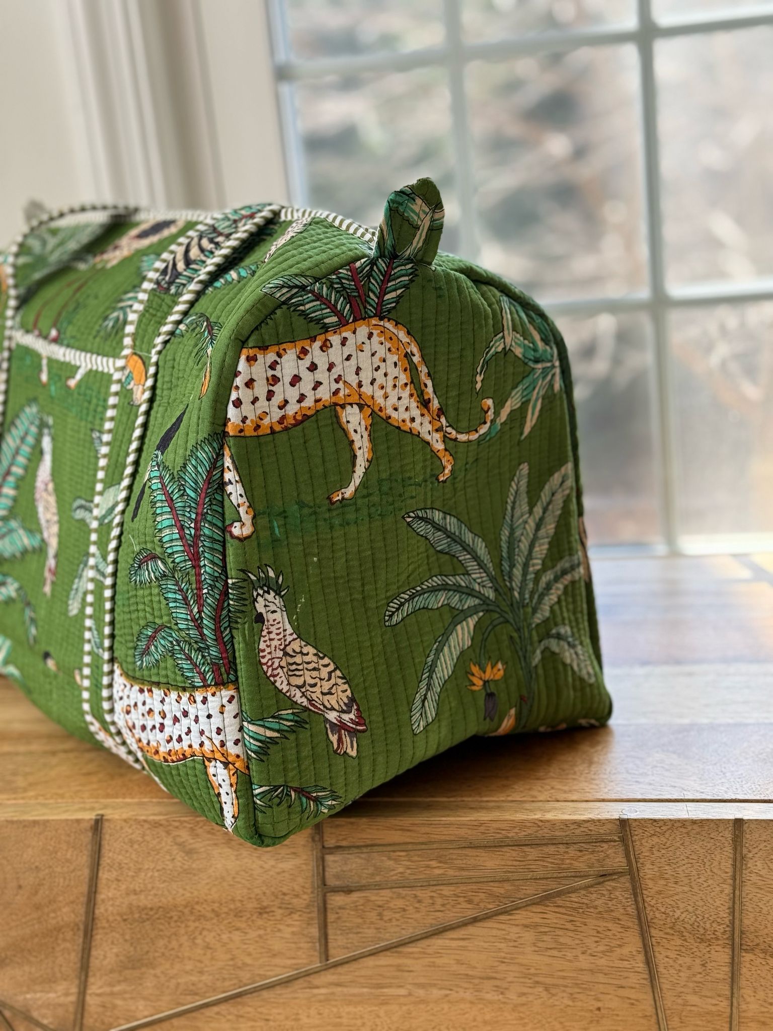 - Add a touch of artisan charm to your travel style with our quilted duffle bags, handcrafted in India using soft 100% cotton.