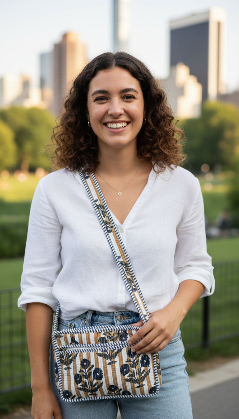 Lightweight and stylish cotton sling bag featuring elegant all-over prints. Compact yet spacious enough for daily essentials, with a secure zip closure and adjustable shoulder strap. Perfect for everyday use, travel, and casual outings.