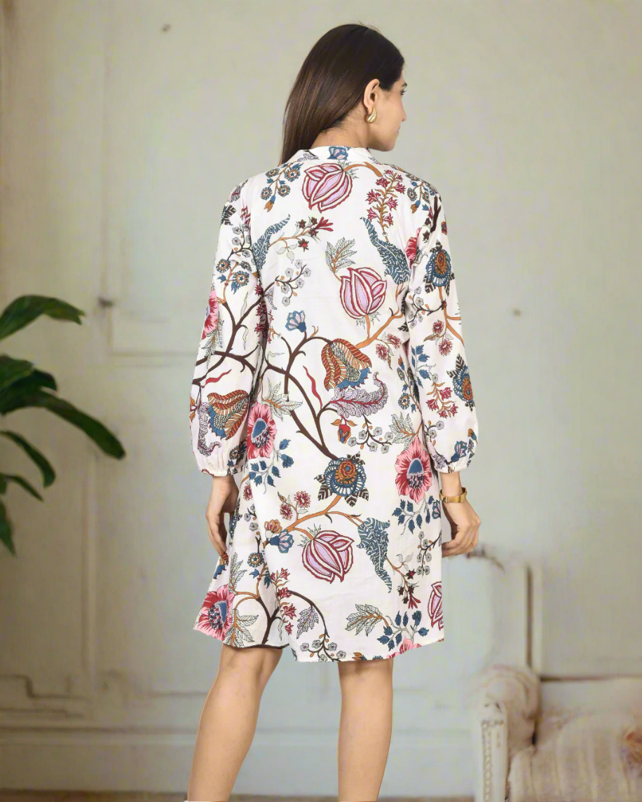 Bring a burst of botanical beauty to your wardrobe with this Indie Botanica Cotton Dress. The all-over hand block print showcases vibrant, nature-inspired motifs. Lightweight and breathable, this dress is perfect for everyday wear, resort getaways, or casual brunches.