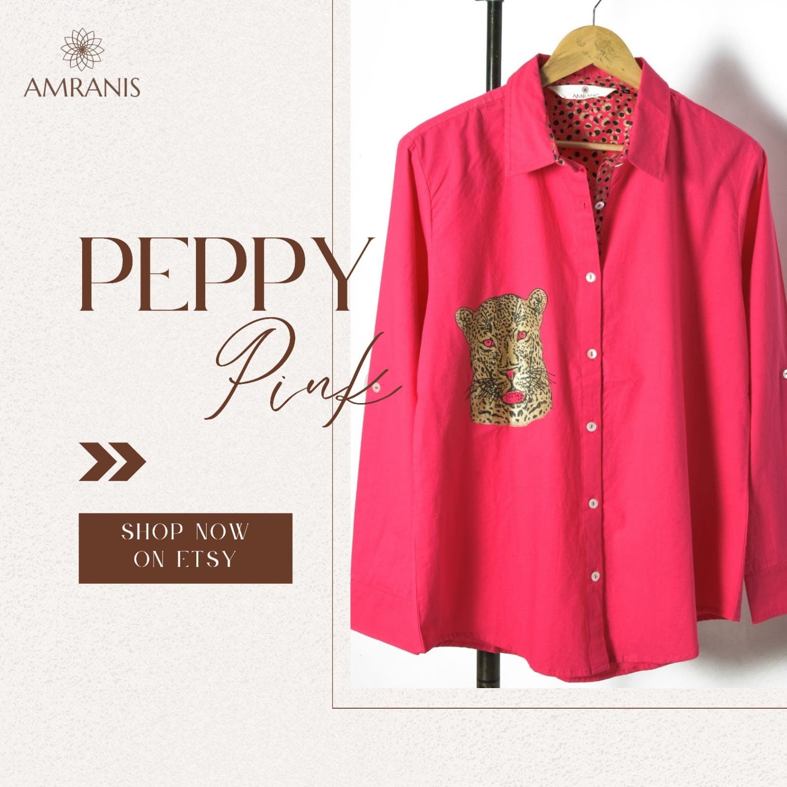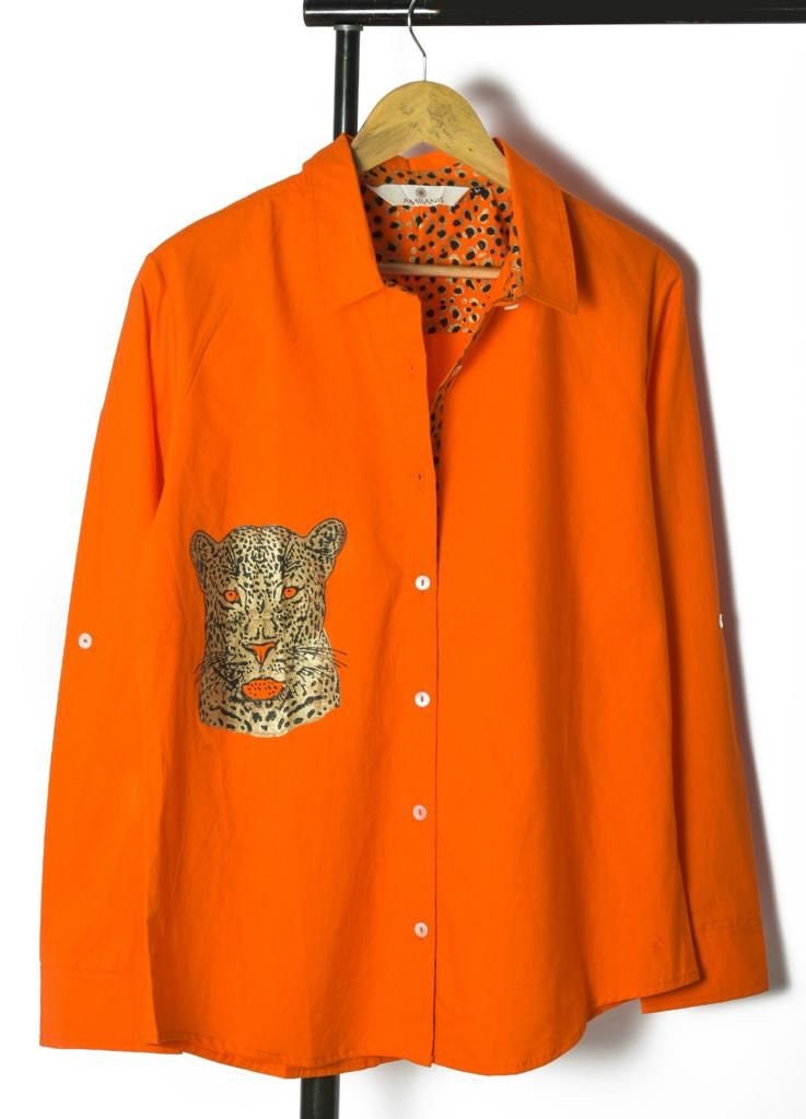 DESCRIPTION: This chic cheetah print button-down shirt, crafted from 100% organic cotton poplin, is perfect for adding a touch of wild style to your everyday look. Versatile for any setting, it can be dressed up or down.