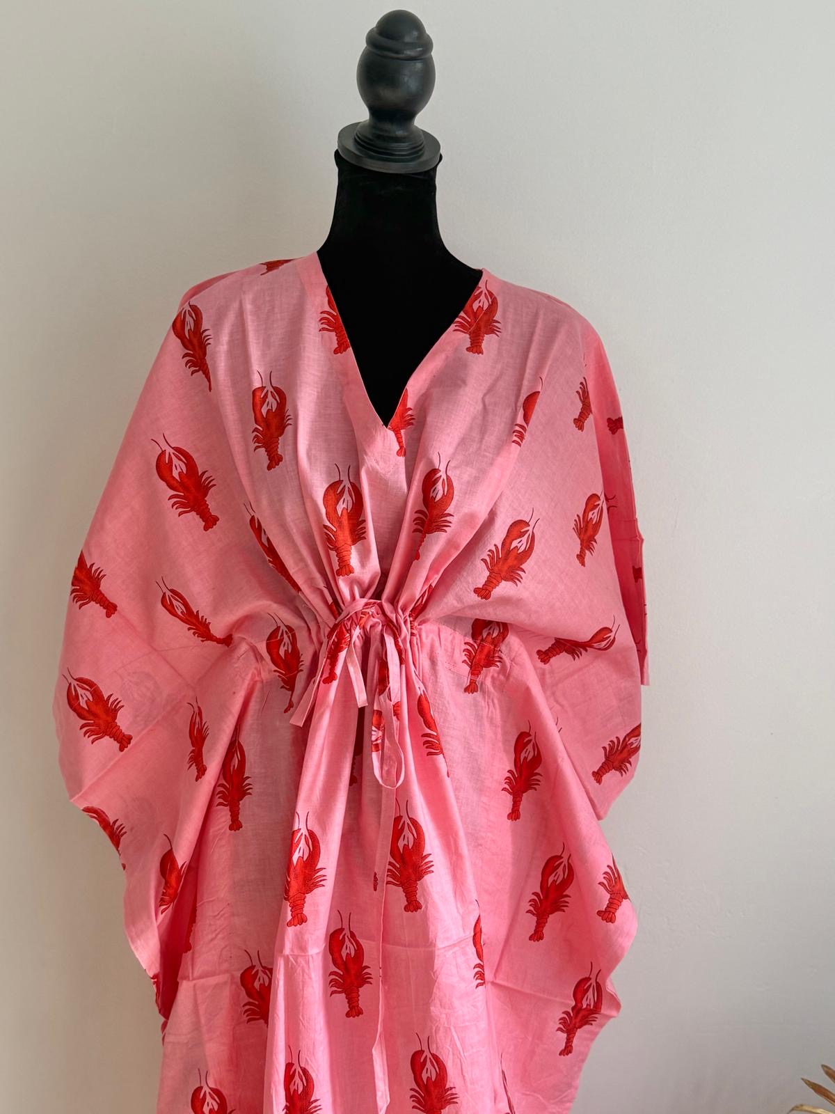 Pink Lobster Printed Cotton Kaftan