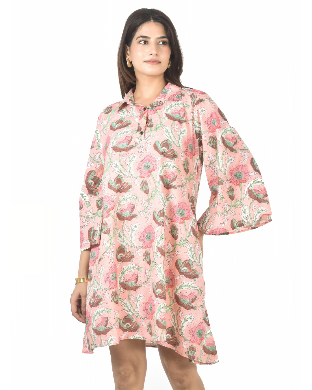 - Feminine and flowy, this Pink Palampore Cotton Mini Dress is your go-to for breezy, effortless style. It features bold floral print that brings charm to both casual days and vacation strolls.