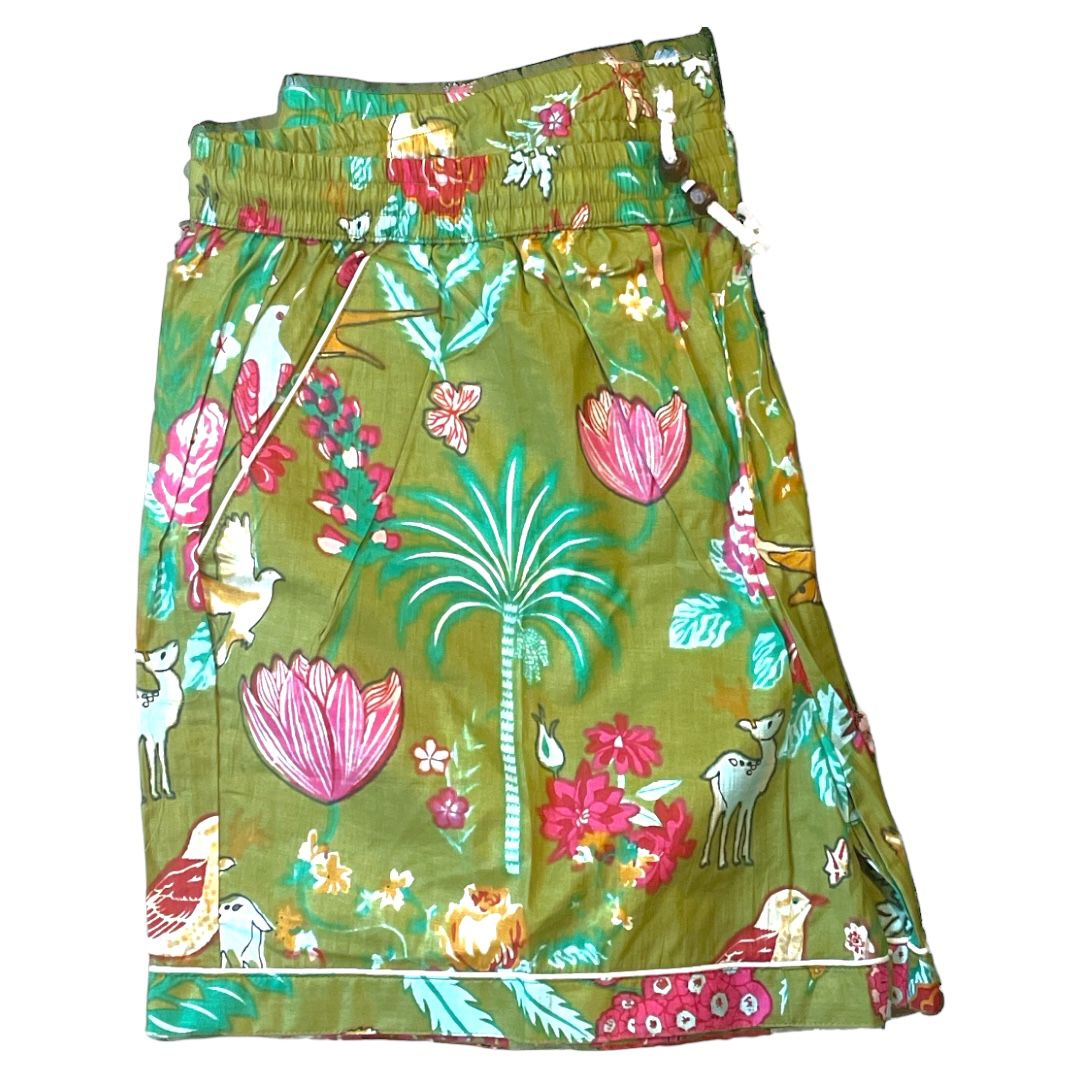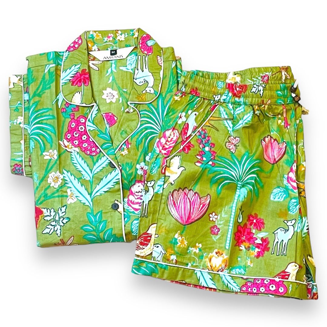 - Reminiscent of old pajama designs, the short sleeved top has a button-down construction with a classic collar. The elastic waistband of the matching pocket shorts ensures a snug fit and maximum comfort.