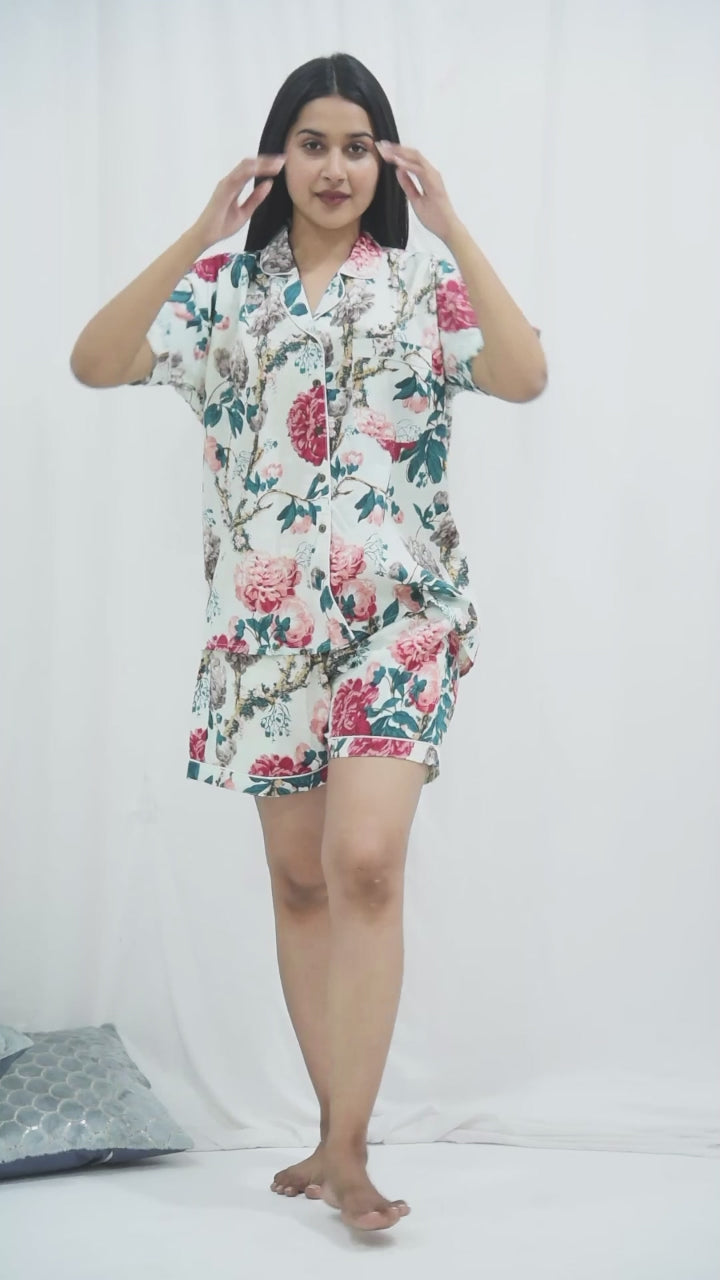 - Reminiscent of old pajama designs, the short sleeved top has a button-down construction with a classic collar. The elastic waistband of the matching pocket shorts ensures a snug fit and maximum comfort.