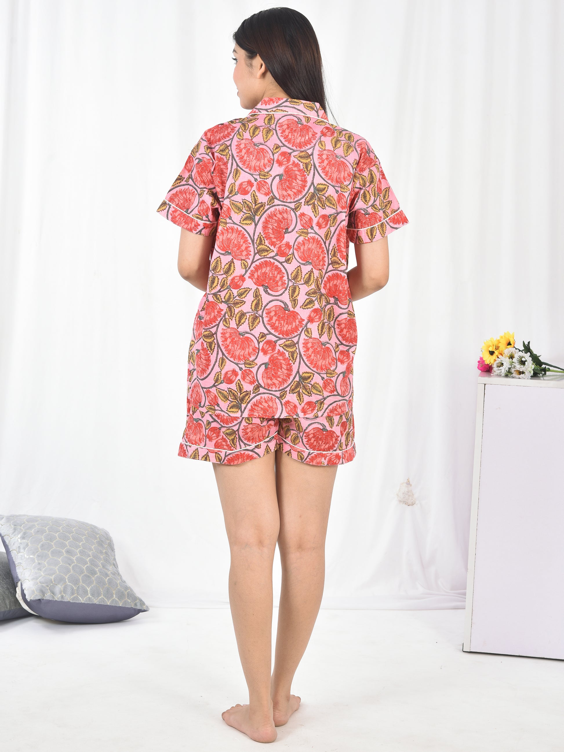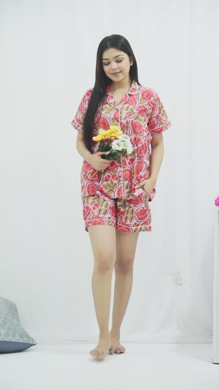 - Reminiscent of old pajama designs, the short sleeved top has a button-down construction with a classic collar. The elastic waistband of the matching pocket shorts ensures a snug fit and maximum comfort.