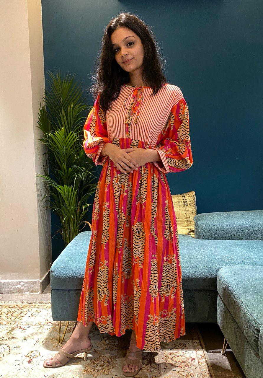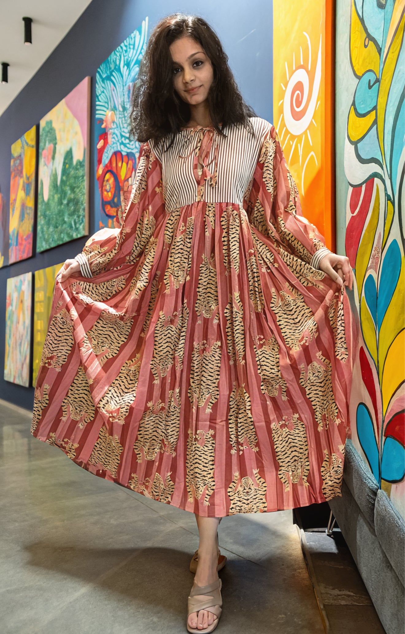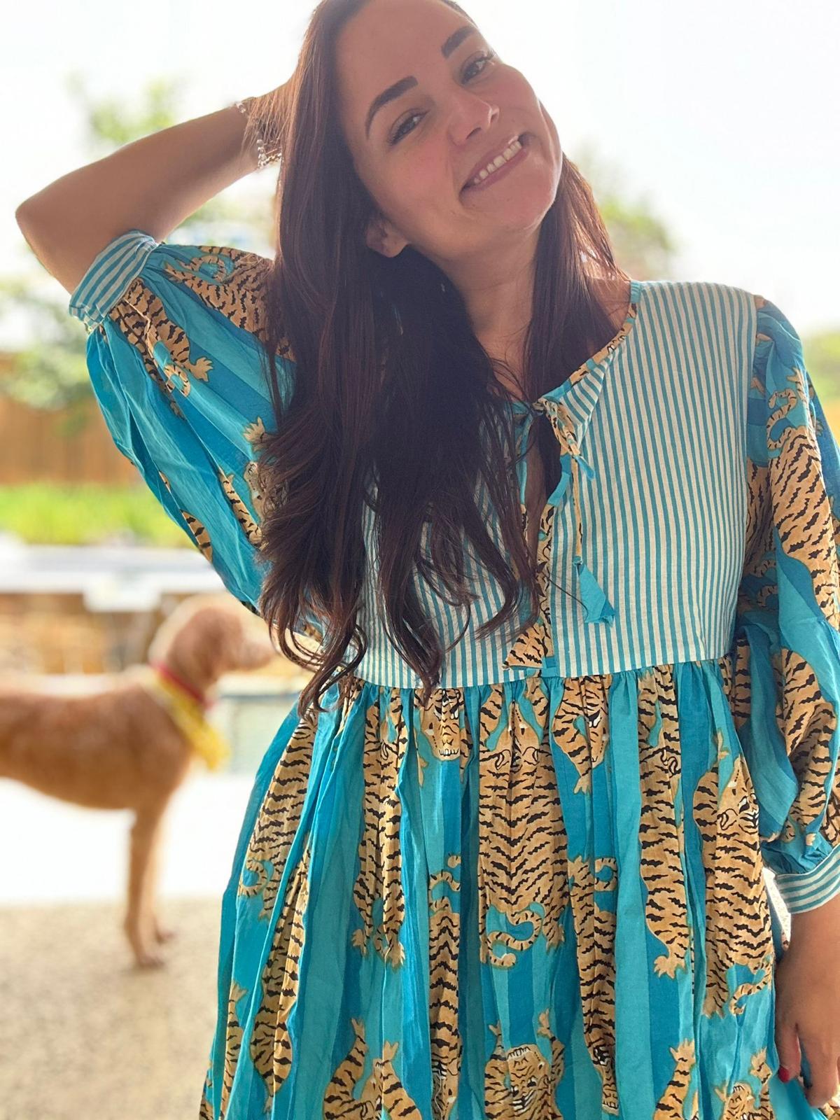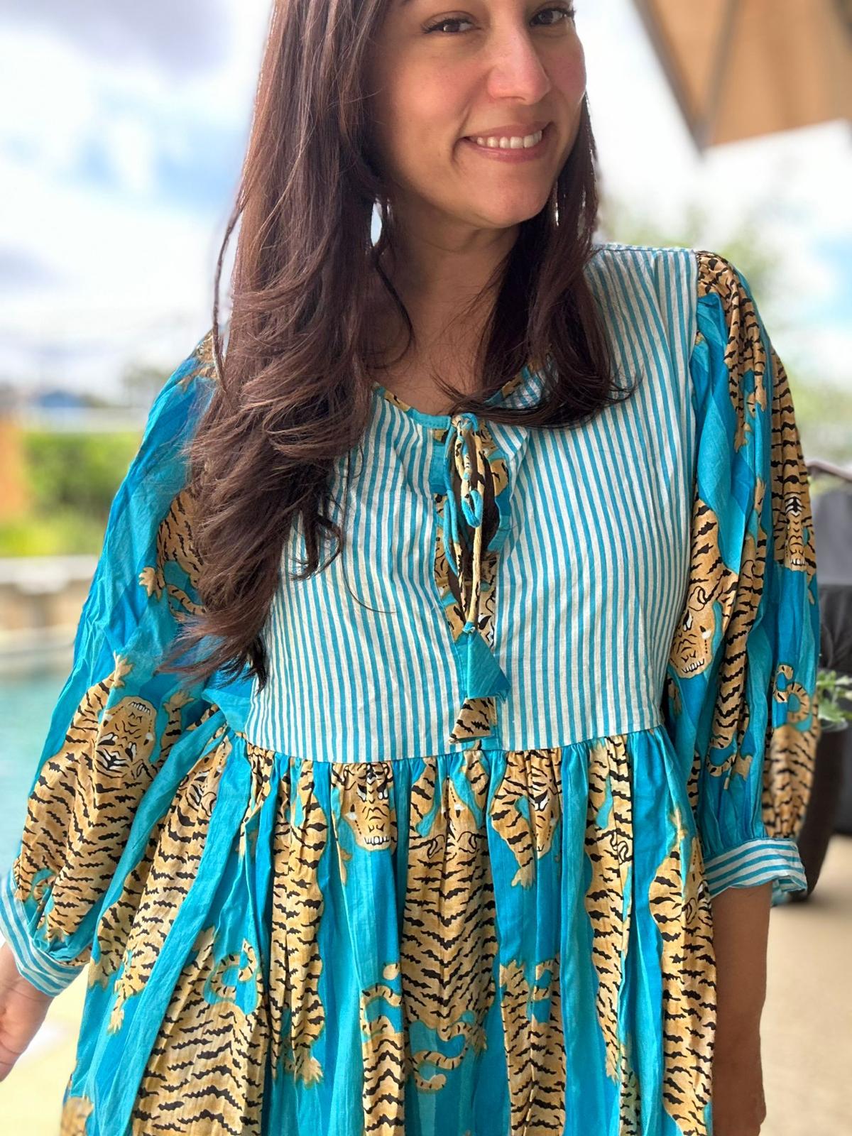 Blue Stripes Tiger Midi Dress | Mini Dress – Boho Chic & Wild Elegance