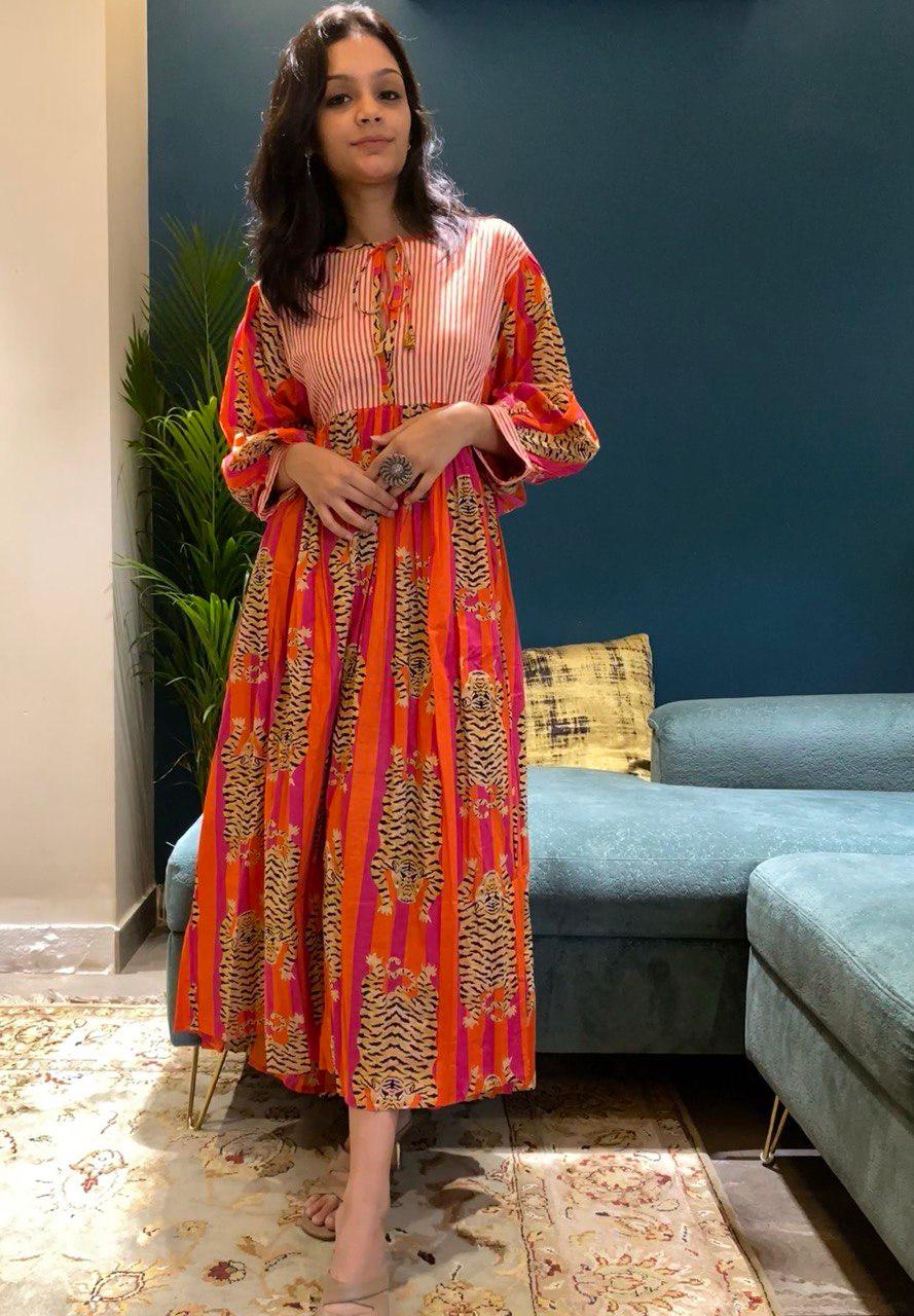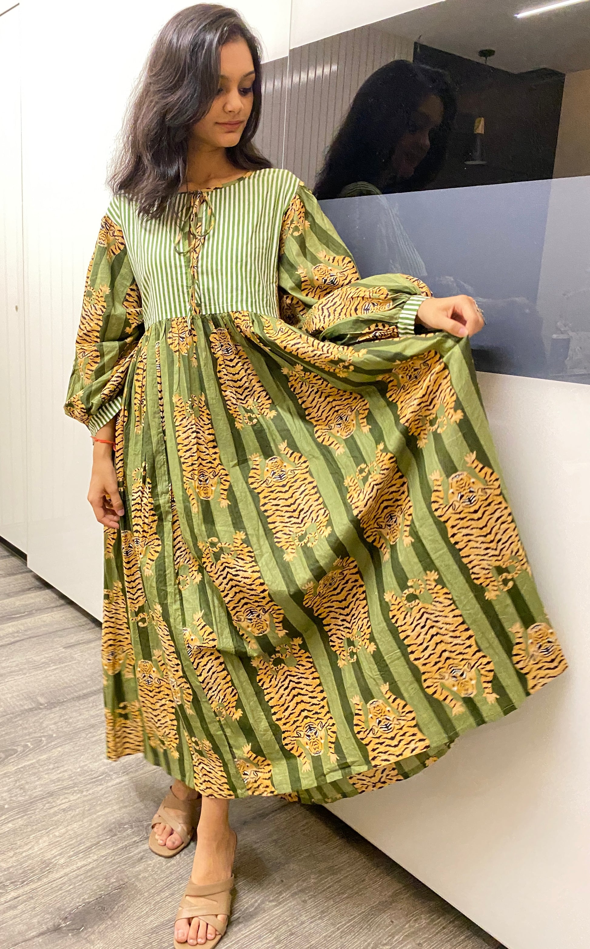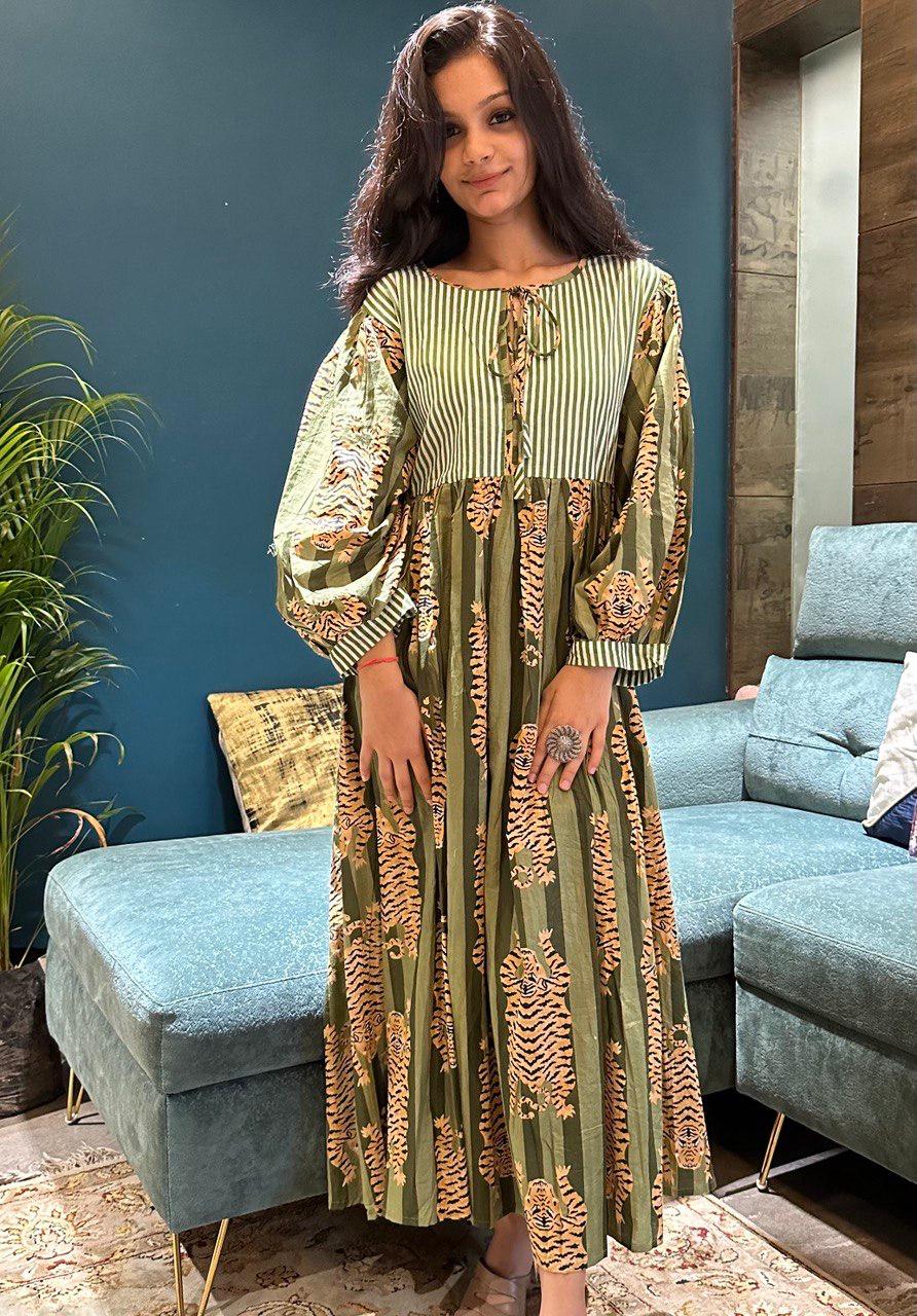 Green Stripes Tiger Midi Dress | Mini Dress – Boho Chic & Wild Elegance