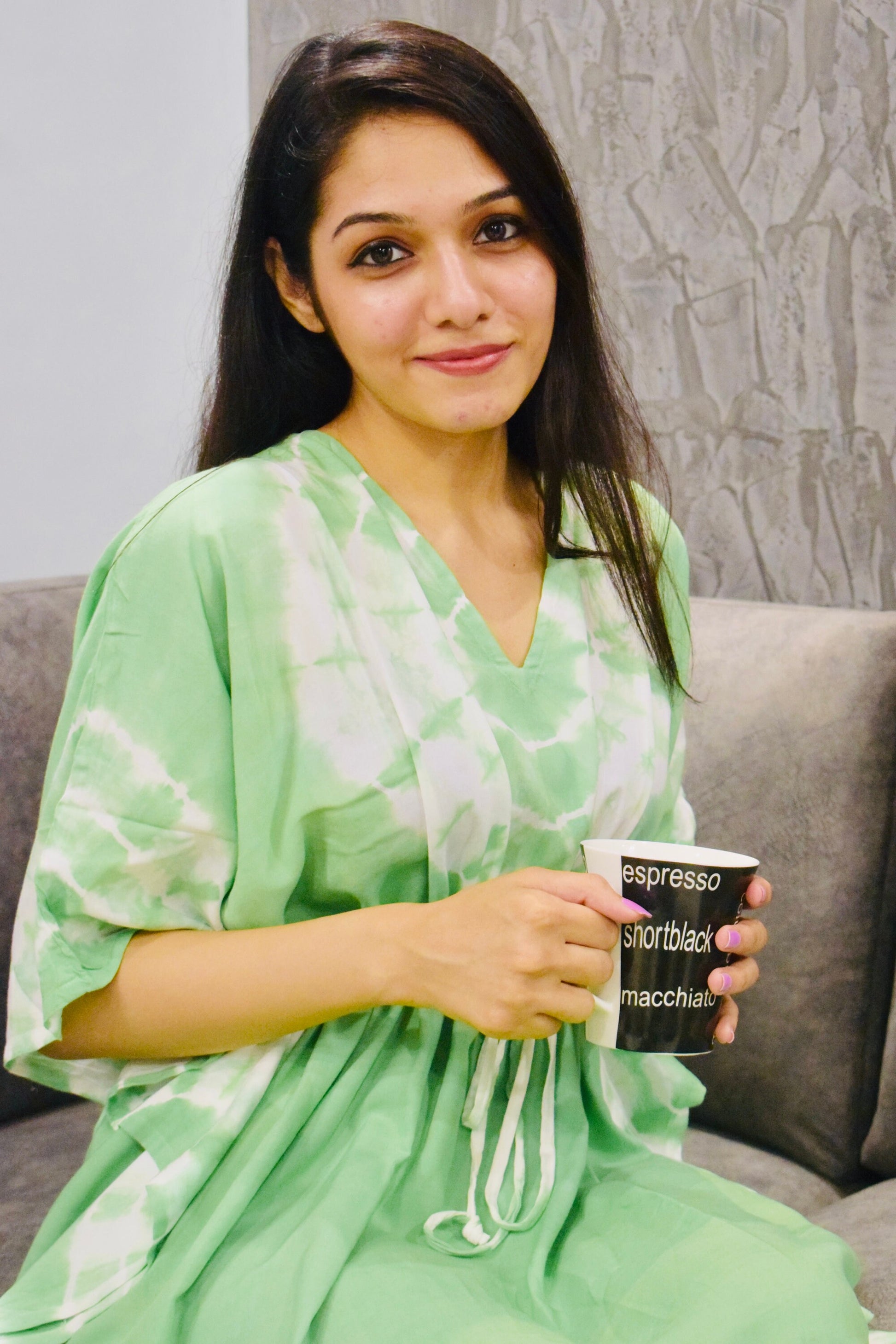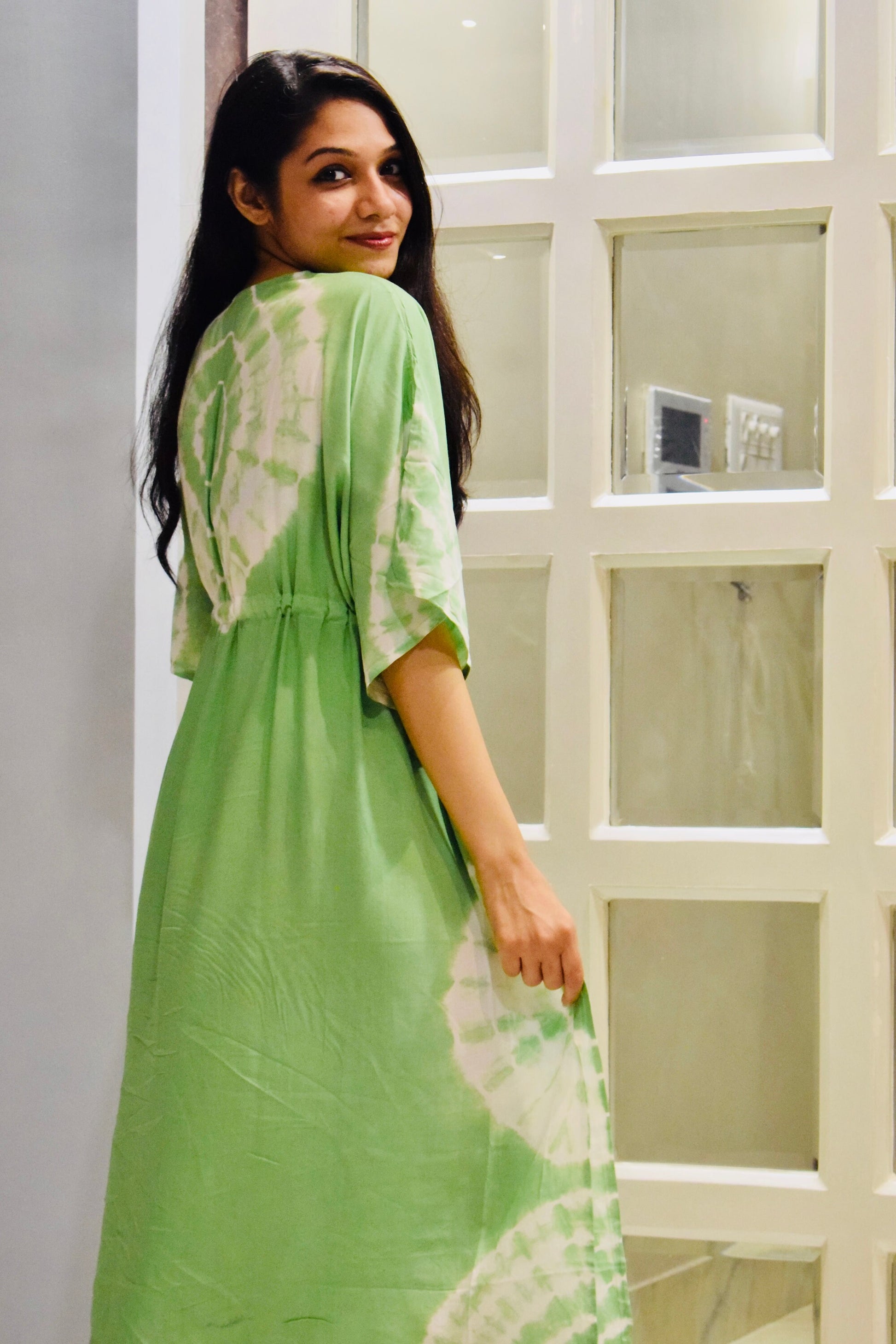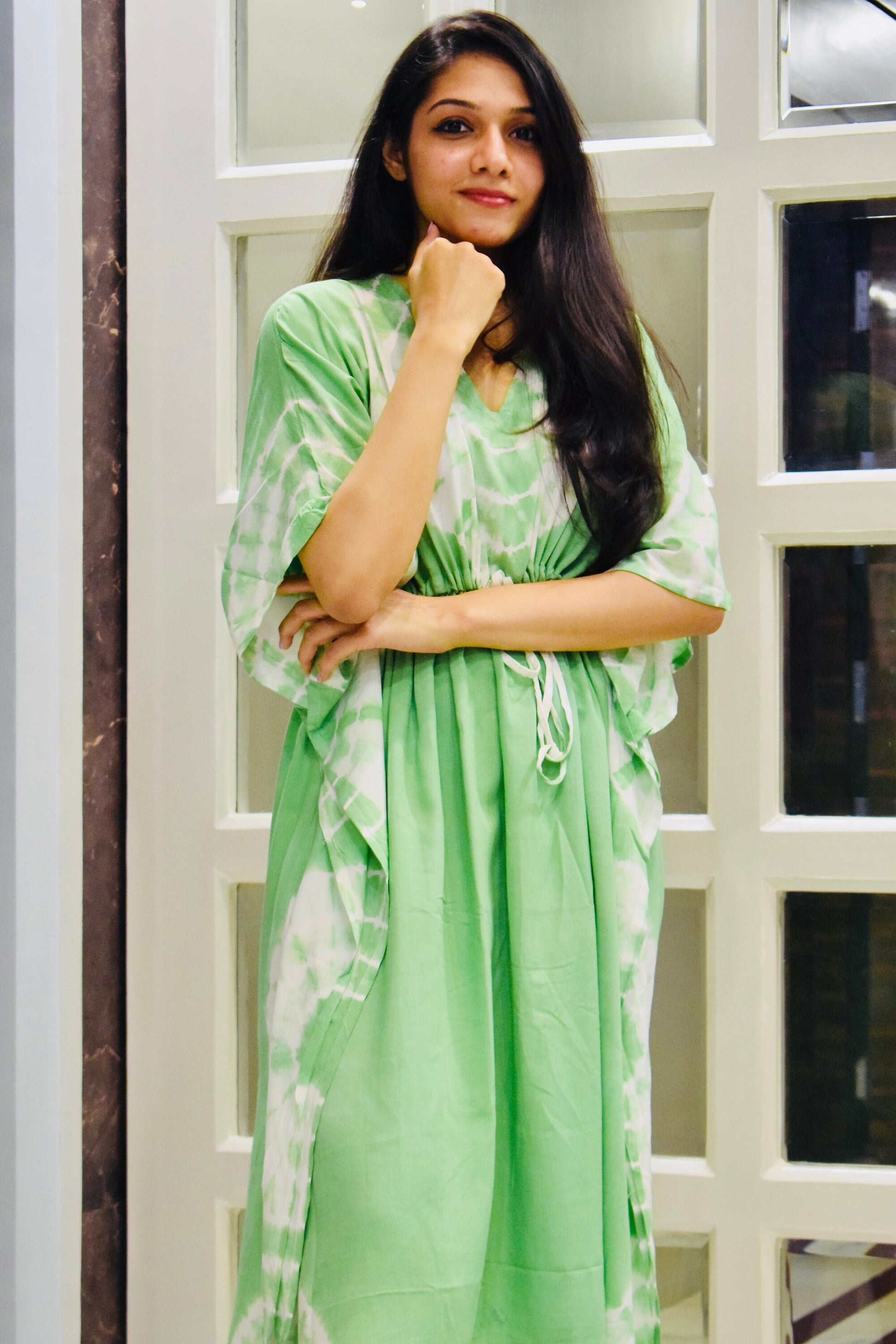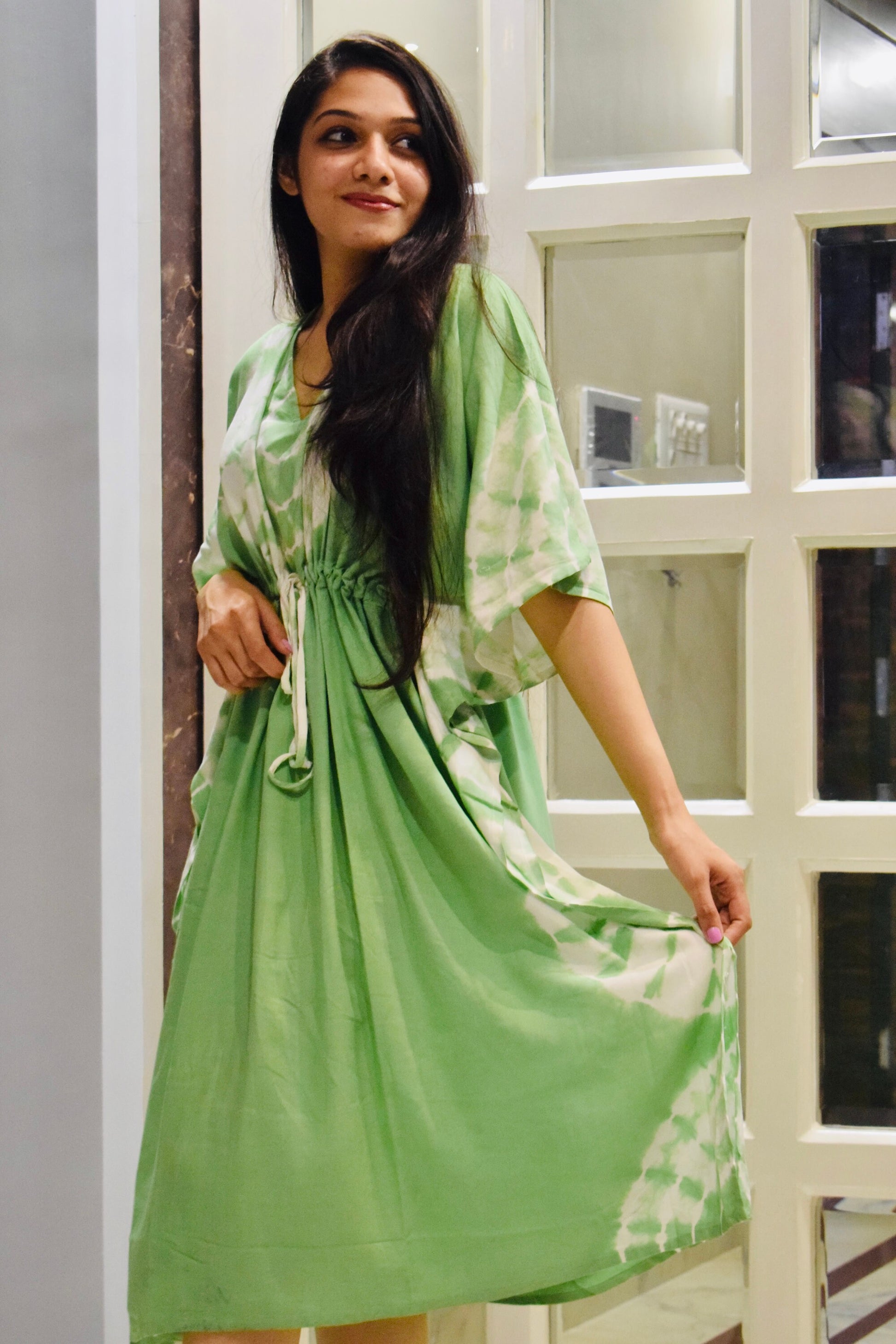 The dynamic tie-dye pattern introduces a burst of bohemian flair, making it the ideal companion for various occasions, whether it's a laid-back day at the beach or a casual evening out. Revel in the vibrant colors and effortless charm that define this chic kaftan.